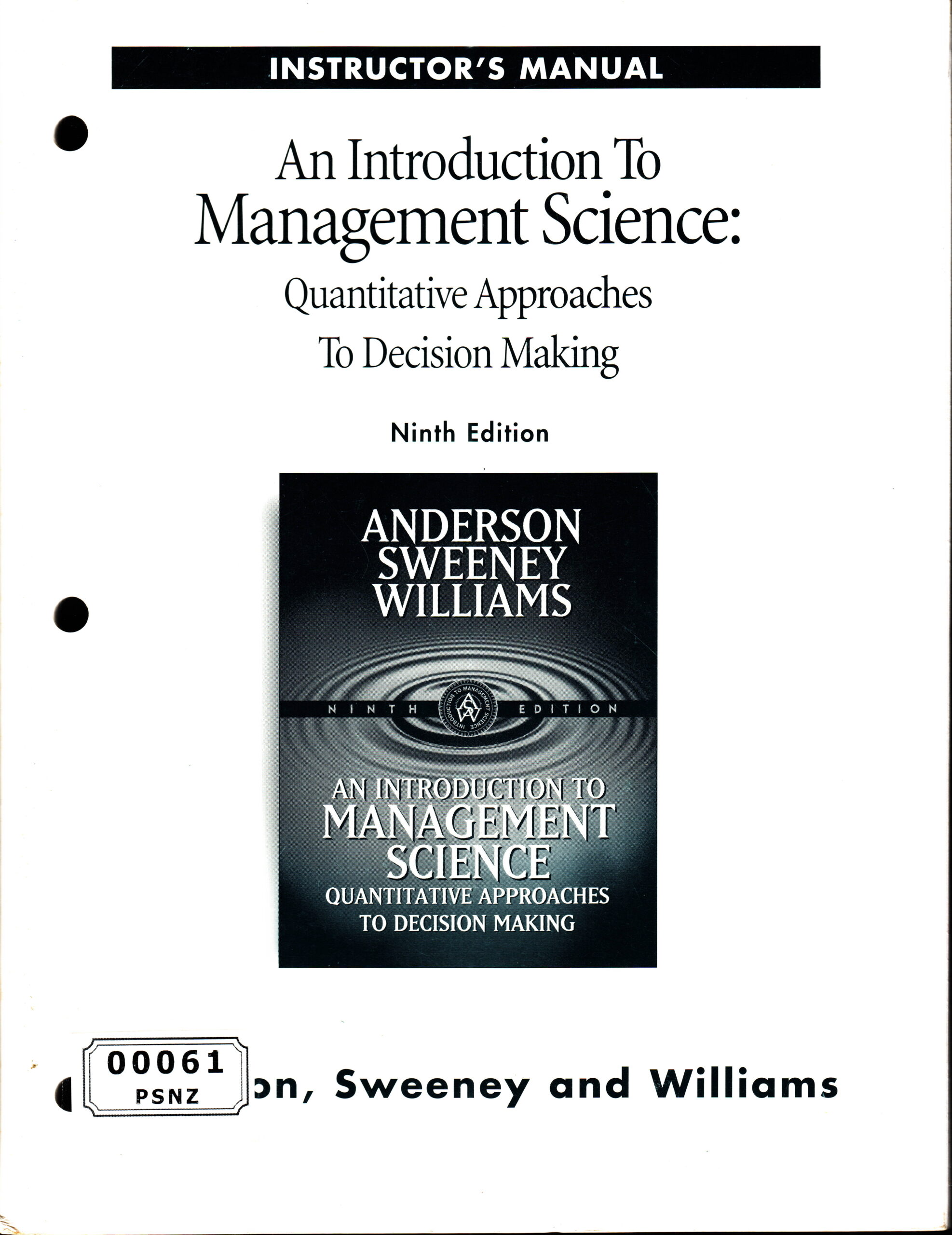 An Instructor’s Manual that accompanies the Ninth Edition of An Introduction to Management Science: Quantitative Approaches to Decision Making
